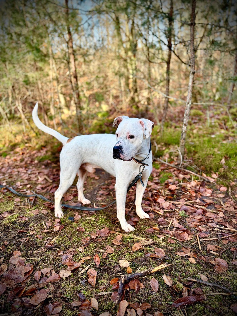 Elliot ist ein zierlicher Dogo-Argentino-Mix, geboren am 01.06.2020,