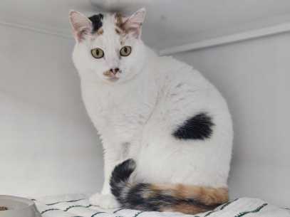 Badem (5 Jahre), eine dreifarbige Katze mit ausgeprägtem Charakter, ist eher unabhängig, schätzt aber Zärtlichkeiten, wenn ihr danach ist. Sie weiß, was sie will, und schenkt denen, die ihren